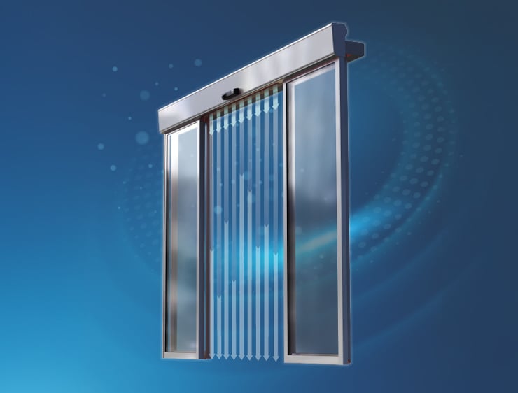 AIRSLIDE Drzwi przesuwne ze zintegrowaną kurtyną powietrzną