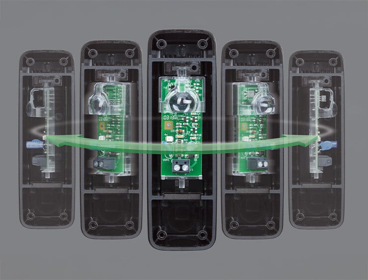 Fotokomórka umieszczona jest na obrotowym wsporniku wyposażonym w najwyższej klasy soczewki, zaprojektowaną w celu optymalizacji wydajności wiązki padającej pod różnymi kątami.